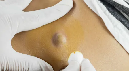 Remoção cirúrgica de cisto sebáceo, geralmente sob anestesia local. Evita recorrência e infecção. Pode deixar cicatriz mínima se fechado com pontos.